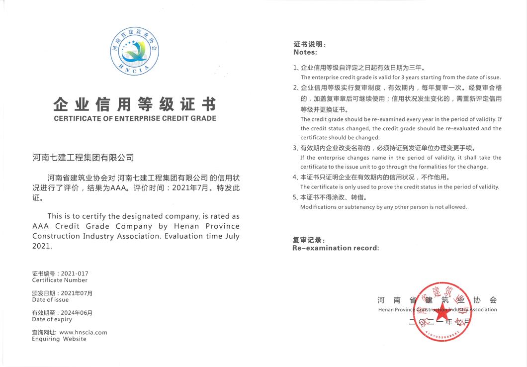 河南省AAA 企業信用等級證書202